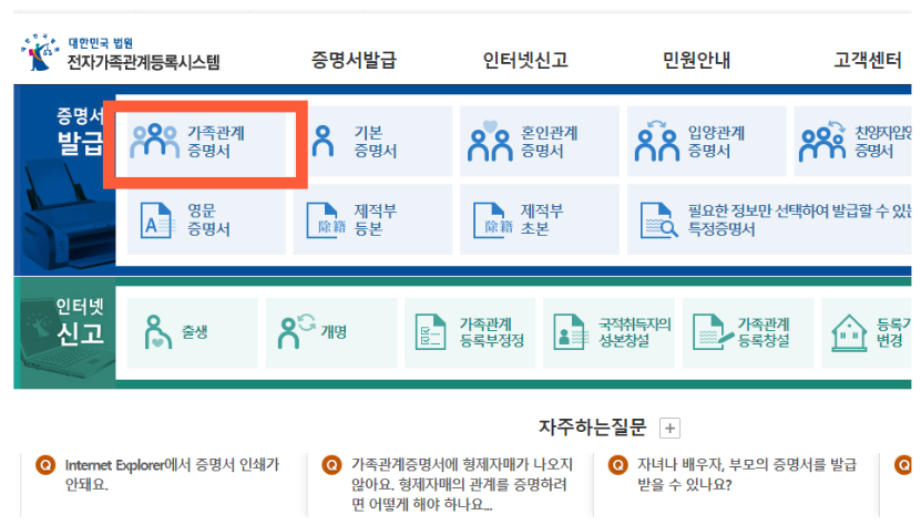 일상 생활에서 다양한 용도로 필요한 가족관계증명서 인터넷 발급에 대해서 알아보고자 합니다. 어렵지 않으니 순서대로 진행해 보시면 원하시는 곳에서 편리하게 인터넷으로 가족관계증명서를 발급 받을 수 있습니다.